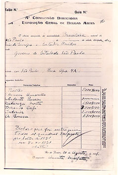 Comprovante de inscrição e devolução das obras de Annita Malfatti apresentadas na 38ª Exposição Geral de Belas-Artes